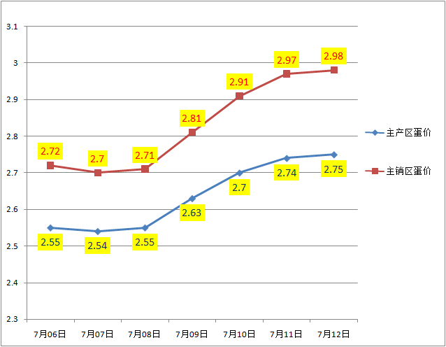 今天产区蛋价涨势趋缓,8省上涨,2省下调,提价区域较昨日大减。四川涨幅最大,均价上涨0.17元/斤,其他提价区域涨势弱小。蛋价接连大范围上涨3天后,今天蛋价涨势放缓,局部区域开端走跌,阶段性上调根本完毕,估计近期蛋价或弱势回调